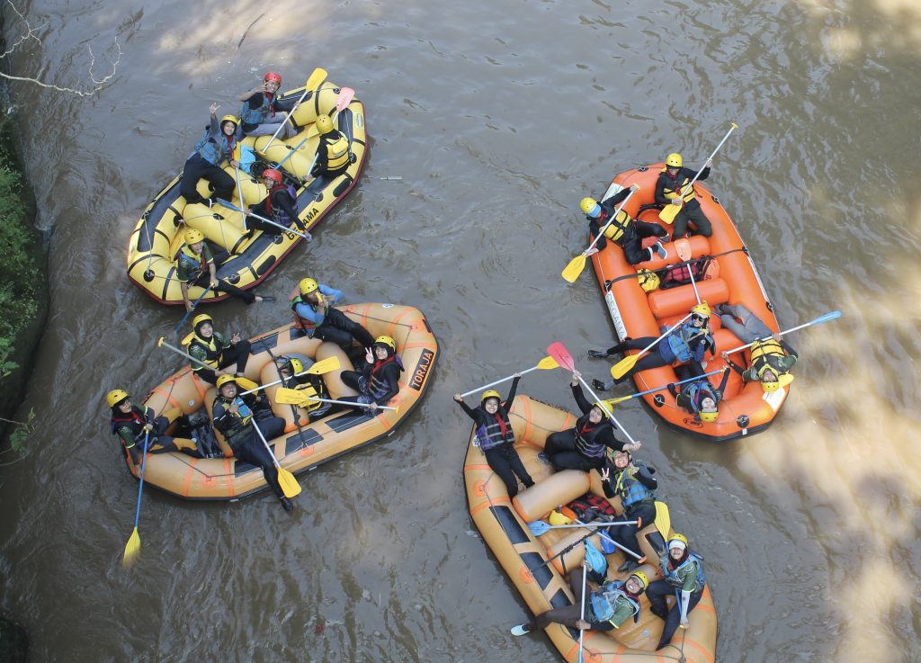 Adapun materi yang disampaikan dan dipraktekkan meliputi materi dasar seperti renang jeram, flip flop, teknik dayung dasar (dayung maju, dayung mundur, dayung tarik, dan dayung pancung), serta materi lanjutan seperti Z-drag, teknik dayung skipper (dayung C, dayung block, dan dayung J-stroke), serta skippering. Pengarungan dilakukan sebanyak dua kali. Pengarungan pertama berfokus pada praktek materi lanjutan. Diawali dengan renang jeram yang dilakukan sebanyak dua kali, yaitu pada jeram titik start dan jeram rest area. Renang jeram meliputi renang aktif dan renang pasif. Renang aktif dilakukan untuk memposisikan diri sebelum memasuki jeram dan melawan arus untuk menepi ke pinggir sungai, sedangkan renang pasif dilakukan saat memasuki jeram dengan posisi kaki di atas setara dengan badan. Keterampilan ini perlu dikuasai untuk menghadapi kemungkinan resiko terjatuh dari perahu saat pengarungan.